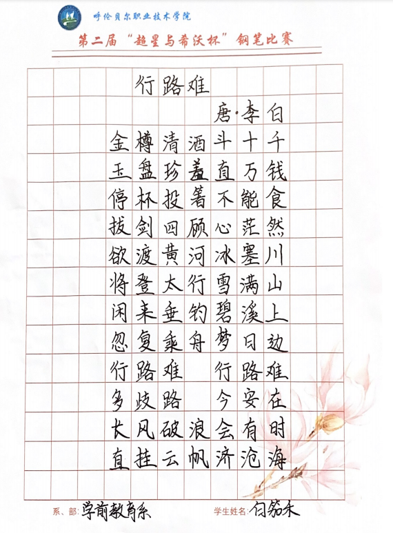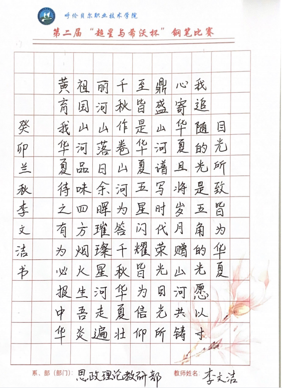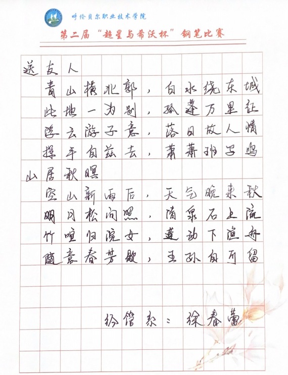书写比赛优秀作品展示 | 呼伦贝尔职业技术学院第二届“超星与希沃杯”钢笔、毛笔书法
